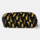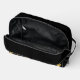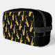 Cool black Dopp Kit bag patterned with saxophones, and a space to add the name of your choice. Superb personalised gift for saxophonists.