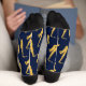 Fun dark blue socks patterned with a saxophone design.