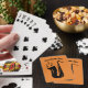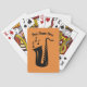 Saxophone playing cards with custom name. Personalised Birthday or thank you gift idea for saxophonist, sax player, music teacher, friend, musician, jazz fan, dad, uncle, marching band etc. Add your own name, club name, blue cafe, pub, restaurant, group, artist, band name, monogram etc. Also nice as Christmas present or party favour. Instrument silhouette with music notes.