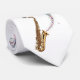 For the sax player in your life! A white silky smooth tie accented with a great looking sax blowing out a colorful solo. Perfect for musicians, band students, band directors and more!