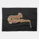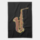 Design with illustration of saxophone on black background; elegant simple jazz musical instrument design