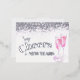 Say cheers to the New Year pink champagne glasses Foil Holiday Postcard
