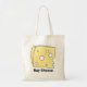 Say cheese tote bag features a slice of yellow swiss cheese with holes. Created from an original marker illustration.