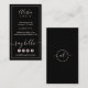 An elegant and sophisticated business card design perfect for a wide range of businesses. Blush Pink trendy script and san serif typography creates a chic and elegant look against a rich black background with a simple blush pink frame. Contact information is displayed in a soft blush pink. "Say Hello" is displayed above four social media icons (Pinterest, Twitter, Instagram and Facebook) and personalise with your social media username/handle. The reverse side features a stylish circle and script monogram design. This beautiful business card combines soft pinks and rich black to create a sophisticated and chic combination perfect for wedding planners, event planners, spas, stylists, makeup artists, beauty industry, fashion, interior designers and so much more.