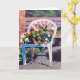 Offer your thanks with this card featuring yellows, reds, greens, blues, and violets. I did this little painting of a lawn chair with a pot of colourful flowers sitting on it. Beyond our patio and bench are trees and bushes in complimemtary colours. Designed exclusively from an original acrylic painting by Professional Artist Daniel Fishback.
