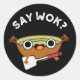 Say Wok Funny Chinese Wok Pun Dark BG Classic Round Sticker