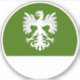 "Vert, an eagle displayed, wings inverted and a base argent."