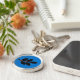 “(Fieldless) An alder slip fesswise reversed sable, fructed gules.” Background colour (shown blue) can be changed on request.
