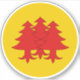 "Or, three pine trees eradicated gules." (Version with black dragon also available.)