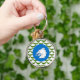 "Argent scaly vert, on a roundel azure a dragon's head couped argent."