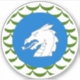 "Argent scaly vert, on a roundel azure a dragon's head couped argent."