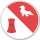 “Per bend gules and argent, a martlet and a tower counterchanged.”