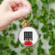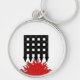 "Argent, a chainless portcullis sable and issuant from base a flame gules."