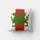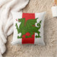 "Argent, a pale gules surmounted by a dragon passant vert." Populace badge for the Middle Kingdom in the Society for Creative Anachronism. Back of pillow is a mediaeval pattern in coordinating colours.