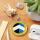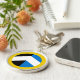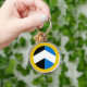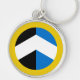 "Per pale sable and azure, a chevron argent and a bordure or."