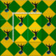 "Per saltire or and vert, an eagle's leg erased sable holding a step-cut gemstone azure." Allover pattern of the populace badge for the Shire of Talonval in the Society for Creative Anachronism.
