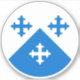 "Per chevron argent and azure, three crosses flory counterchanged."