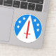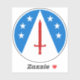 "Azure, on a pile inverted throughout between six mullets in annulo argent, in pale a sword palewise gules."