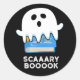 Scaaaary Booook Funny Ghost Book Pun Dark BG Classic Round Sticker