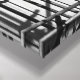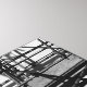 A black and white photo of scaffolding against a Portland Stone wall casting seemingly chaotic shadows creating an interesting abstract design.