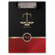 Clipboard - Scales of Justices sharp red and black with DIY monogram and name. 📌If you need further customisation, please click the "Click to Customise further" or "Customise or Edit Design" button and use our design tool to resize, rotate, change text colour, add text and so much more. ⭐This Product is 100% Customisable. Graphics and / or text can be added, deleted, moved, resized, changed around, rotated, etc... ⭐99% of my designs in my store are done in layers. This makes it easy for you to resize and move the graphics and text around so that it will fit each product perfectly. 📌 (Please be sure to resize or move graphics if needed before ordering) You can also "TRANSFER DESIGN" on other Zazzle products and adjust the design to fit most of Zazzle items. (button is down on the right side of the page) This design is made with high resolution vector and/or digital graphics for a professional print. 📌NOTE: (THIS IS A PRINT. All Zazzle product designs are "prints" unless otherwise stated under "About This Product" on the left side of this page) The design will be printed "EXACTLY" like you see it on the screen and on the product...so please make sure when you do your changes on the resizing of any of the graphics or text that it fits in the areas correctly and that your spelling and wording is how you like it to be in size, colour and font. If you have any questions about the "DESIGN ONLY" or need help please contact me at ✉ siggyscott@comcast.net or visit my store link: https://www.zazzle.com/store/designsbydonnasiggy (Copy and Paste) I'll be happy to help. 📌 ALL OTHER QUESTIONS (shipping, refund, the printing, the product, etc...) please contact Zazzle or the Maker ⭐DIRECTLY⭐. Thank you for the support and stopping by my store - DesignsbyDonnaSiggy. © Donna Siegrist⭐⭐⭐ ZAZZLE promises 100% satisfaction. If you don't absolutely love it, Zazzle will take it back! ⭐⭐⭐ 1-888-8ZAZZLE (1-888-892-9953) Phone hours: Mon - Fri: 9AM - 5PM PT (12PM - 8PM ET)
