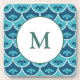 This easy to monogram coaster features a classic scallop design enhanced by small folk art inspired floral elements in wonderful sea colours of teal, blue and green. All colours, including the background, may be edited to any hue for a truly unique look.