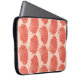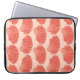 Computer Sleeve in a block print pattern, based on a scallop shell, in coral orange on a pastel coral background