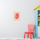 Print in a block print pattern, based on a scallop shell, in coral orange on a pastel coral background
