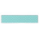 Table runner in a block print pattern, based on a scallop shell, in turquoise on a pastel aqua background