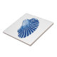 Ceramic tile in a vintage scallop shell illustration, digitally coloured and enhanced, in deep indigo blue on a white background