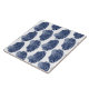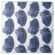 Ceramic tile in a block print pattern, based on a scallop shell, in dark navy / indigo blue on a white background
