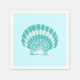 Digitally enhanced, mixed media vintage illustration of a scallop shell - soft aquamarine blue with white