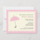 Scalloped edges echo the curves of the bottom of the umbrella on this cute baby shower invitation. It features a pastel pink umbrella on top of a cream coloured scalloped edge frame. It all sits on top of a matching pink flower patterned background. Don't forget to add any extra information on the back or just delete it to leave the back blank. Available in alternate colours with matching products.