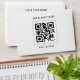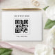 Modern and minimal black and white square wedding response card design features your custom QR code to a wedding website so guests can reply online rather than mailing back a card.