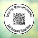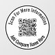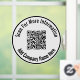 In the centre, there's a display image. You can replace it with your QR code. A black circle forms the border. A line of black display text is above and below the image. You can edit the text to show a custom message such as information about the QR code or the name of your business.
