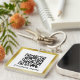You can enter your website URL to create a custom QR code. There is black display text that you can edit to show a custom message. These elegant keychains have black text in a white square. The faux (not foil) gold border is an artistic rendering.