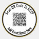 You can replace the display image with your QR code. There are two lines of black display text that you can edit to show a custom message. These elegant stickers have black text in a black and white circle. The faux (not foil) gold border is an artistic rendering.