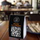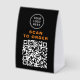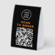 Streamline your service and enhance customer convenience with this black Scan to Order QR Code Table Tent Sign, perfect for restaurants, cafés, bars, breweries, coffee shops, food trucks, and self-serve dining spaces. This clean, modern tabletop sign allows guests to scan instantly to place their order, reducing wait times and keeping your operations efficient and contact-free. This lightweight table tent is easy to set up on any table, bar top, register counter, or pickup station. Add your logo and QR code ordering link, and adjust the text and colors to match your brand’s style. The minimalist design and bold white typography make the QR code stand out clearly, ensuring quick and reliable scanning from any device. Ideal for businesses using digital menus, mobile ordering, or online checkout, this customizable table tent creates a polished, professional experience your customers will appreciate.