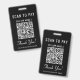 Get paid anywhere you do business with this clean, professional black and white Scan to Pay 2 Payment QR Codes Badge. This lightweight badge lets customers send payment instantly with a quick scan -- perfect for mobile service, busy events, and on-the-go checkout. The minimalist layout features a bold scan to pay call-to-action, clearly centred QR codes on each side, and a friendly “Thank You” message that reinforces trust and professionalism. Upload your QR codes, and add your payment app names and your business name for a polished, branded look. Ideal for vendors, artists, bartenders, hair stylists, makeup artists, delivery drivers, market sellers, and event staff, this wearable payment badge keeps checkout fast, contactless, and convenient -- no counter space needed.