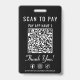 Get paid anywhere you do business with this clean, professional black Scan to Pay 2 Payment QR Codes Badge. This lightweight badge lets customers send payment instantly with a quick scan -- perfect for mobile service, busy events, and on-the-go checkout. The minimalist layout features a modern white lettering, bold scan to pay call-to-action, clearly centred QR codes on each side, a friendly “Thank You” message and your Facebook, Instagram and TikTok social media handle. Ideal for vendors, artists, bartenders, hair stylists, makeup artists, delivery drivers, market sellers, and event staff, this wearable payment badge keeps checkout fast, contactless, and convenient -- no counter space needed.