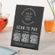 Simple black table top pedestal sign for your business with the ability to upload 3 QR codes for contactless mobile payment apps. Add your logo and