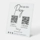 In a modern minimalist style, a simple custom white business scan to pay with QR code pedestal sign. The adaptable template is readily customisable with QR codes, custom text, payment icons, and social media icons.