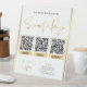 Professional Scan to Pay Business Pedestal Sign with space for three QR codes, your business logo and contact details. Add your paypal, venmo, apple pay, cashapp or any other electronic payment methods. Featuring an elegant white and faux gold design, this contactless scan me sign is perfect for your salon, boutique or any other business.