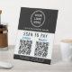 Simple black and white modern table top pedestal sign for your business with Venmo and Paypal QR codes for customers to scan for payments. Add your logo, QR codes, and business name, phone number, street address or other information in simple typography.