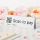 A QR code is next to Scan to pay. Thank you is in script under Scan to pay. PayPal is under the QR code, but it can be changed to show the correct mobile payment app.