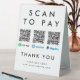 Streamline payment options with this convenient table tent sign. Features individual QR codes for Venmo, Cash App, and Paypal. Perfect for businesses accepting various mobile payments.