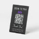 Simple black modern table top pedestal sign for your business with a Zelle QR code for customers to scan for payments. Add your QR code, business name, phone number and street address in simple white typography.