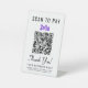 Simple modern table top pedestal sign for your business with a Zelle QR code for customers to scan for payments. Add your QR code, business name, phone number and street address in simple typography.
