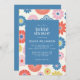 Scandi Boho Folk Flower Blue Bridal Shower Invitation