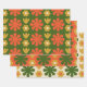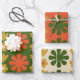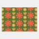 Scandi Retro Floral Folk Art Patterns Orange Green Wrapping Paper Sheet